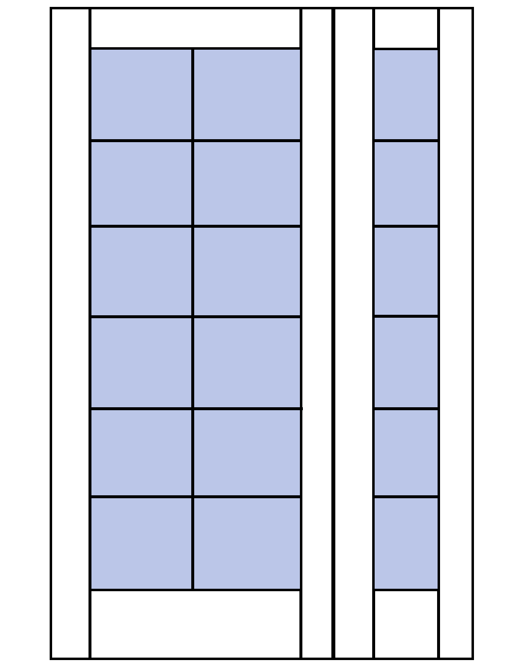 Døren er produceret med hærdet glas og 30 mm glasinddelinger.